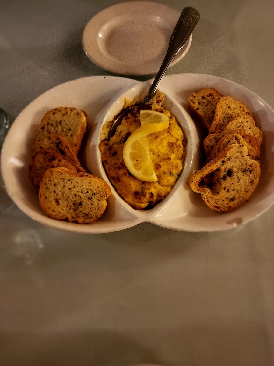 - Crab Dip: A delightful fusion of jump lump crab meat, cream cheese, and spices served with house-made crostini. ($18.00)